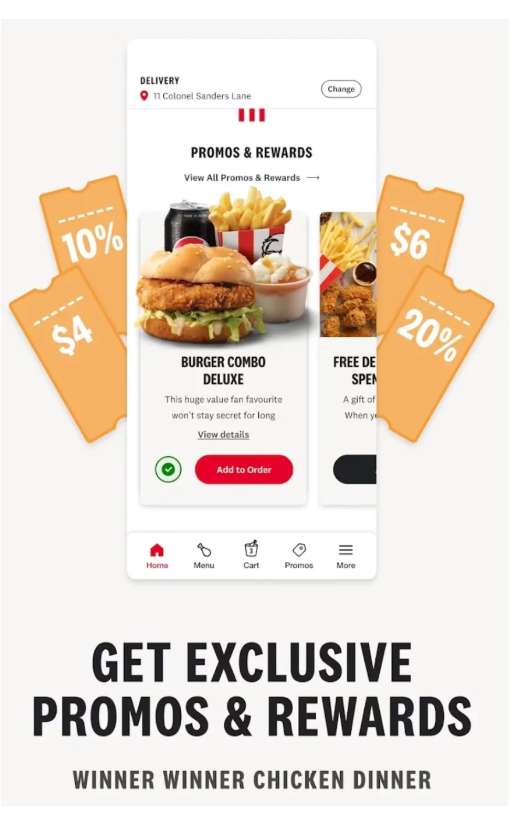 墨尔本吃饭吧微信公众号24日报道,想要收到这类定向优惠,前提是必须在KFC App的账户设置中开启邮件营销选项。符合条件的用户打开App后,就有机会在优惠页面中看到专属折扣,但具体出现哪一档优惠无法自行选择,只能以系统推送为准。