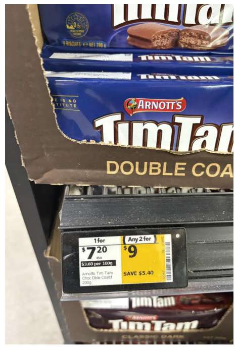 一包Tim Tam卖到7.20澳元,正在把不少澳洲消费者“劝退”。近日,有澳洲市民在Surry Hills的Elizabeth Street一家Woolworths Metro发现,Arnott’s旗下的Tim Tam Double Coat被标价7.20澳元,这一价格迅速引发强烈反弹,不少网友直呼“离谱”“简直是在抢钱”。