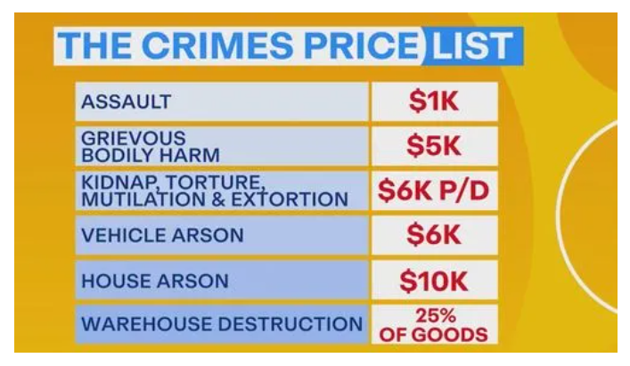 澳洲一名前警探表示,网上出现一份“价目表”,上面明码标价提供从纵火、绑架到酷刑等各种雇凶服务。
