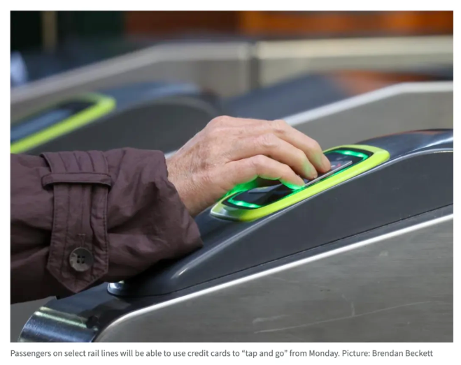 墨尔本吃饭吧微信公众号16日报道,不过,这项功能目前只是一个有限范围的试点项目。只有在上述线路完成单程或往返火车行程时,乘客才可以使用信用卡直接刷卡。如果途中需要换乘其他火车线路、公交或电车,仍然必须使用Myki卡,否则可能会被系统重复收费或面临罚款。