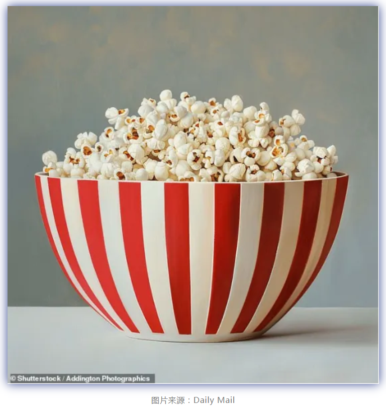 令人惊讶的是,这款被他极力推荐的食物,竟然就是人们在超市常能买到的——空气爆米花(Air-popped Popcorn)!