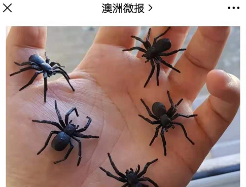 这是黑屋蜘蛛玩具模型,真蜘蛛差不多就这么大。(图/澳洲微报微信公众号截图)