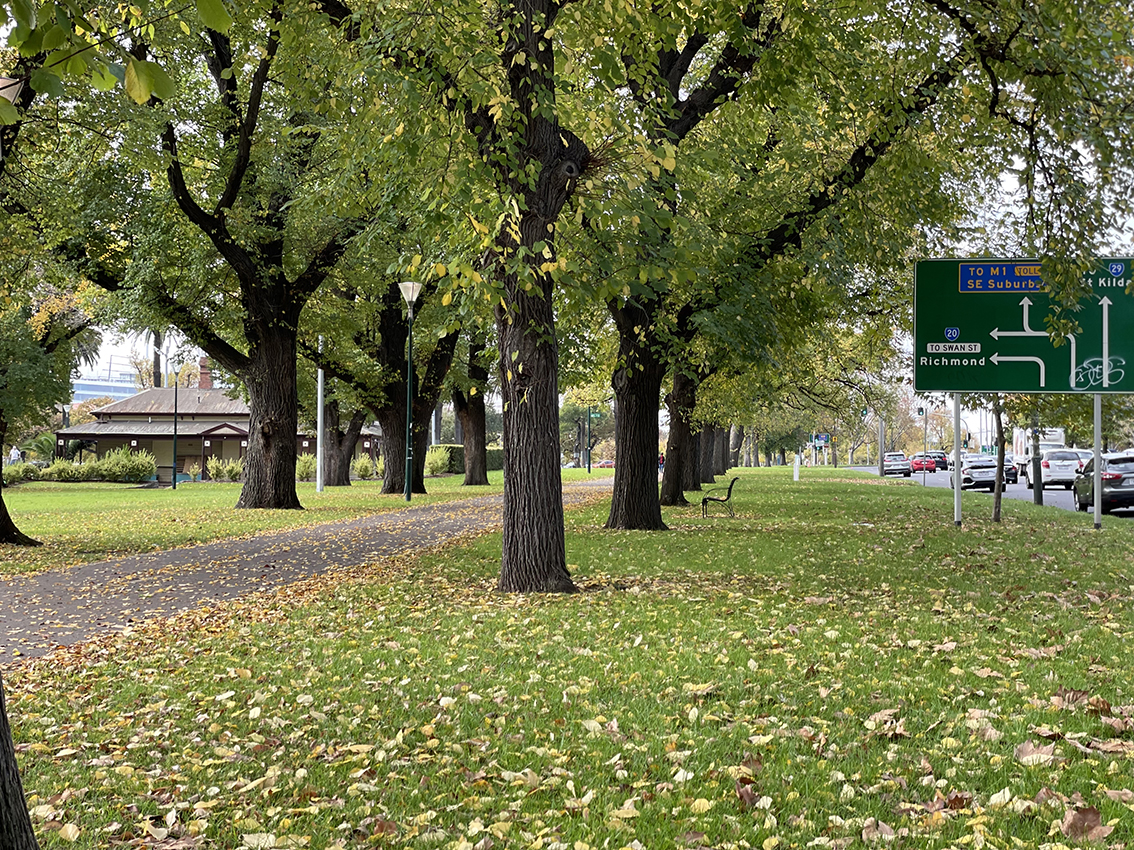 图为墨尔本街道上的落叶。图片来源:大洋传媒记者 黄懿 摄