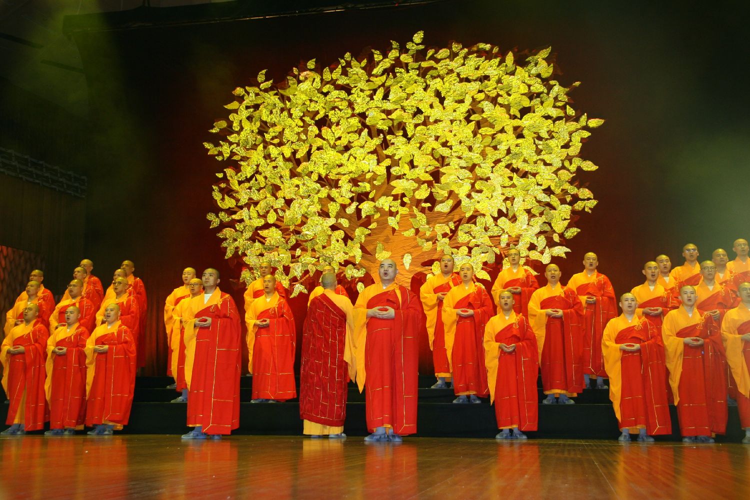 当地时间8月3日,由百余位高僧组成的中国佛教梵呗艺术团在悉尼歌剧院音乐厅呈现了一场名为“祈福”的佛教梵呗音乐会。音乐会上,艺术团为观众献上了十余个节目,涵盖了藏传、南传、汉传三大语系的佛教文化。图为音乐会上的合唱表演。图片来源:澳洲网