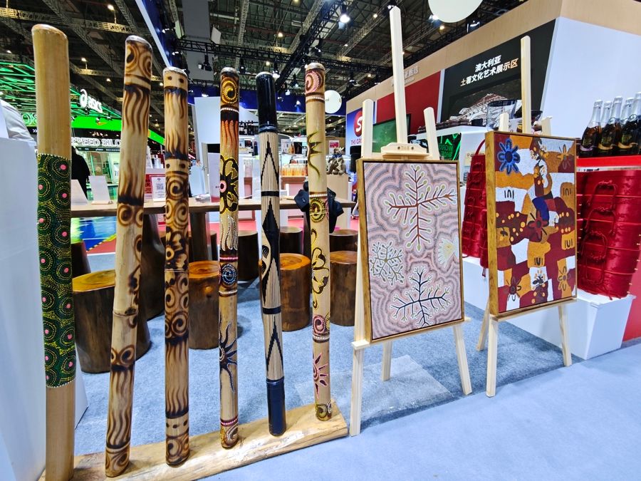 澳洲世源会董事长陈莲(Michelle Chen)与绿地集团提前沟通,为第八届进博会做足准备。不仅展位面积扩大一倍,并特别设置了澳洲原住民文化展区,色彩浓烈的绘画、古朴的器乐与手工艺品错落摆放,观众伸手就能触摸到纯正的澳洲文化肌理。(上海上观新闻)