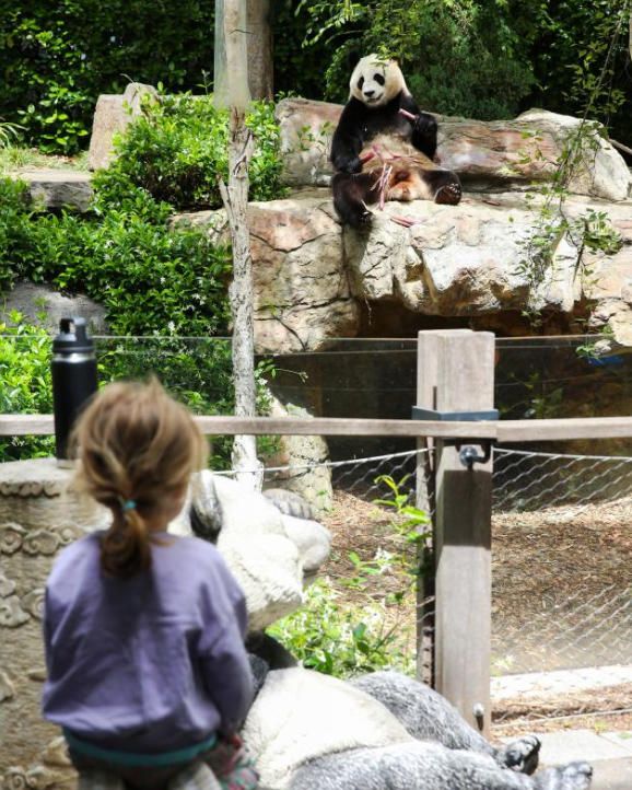 11月10日,一名小女孩在澳洲阿德莱德动物园观看大熊猫。图片来源:新华网