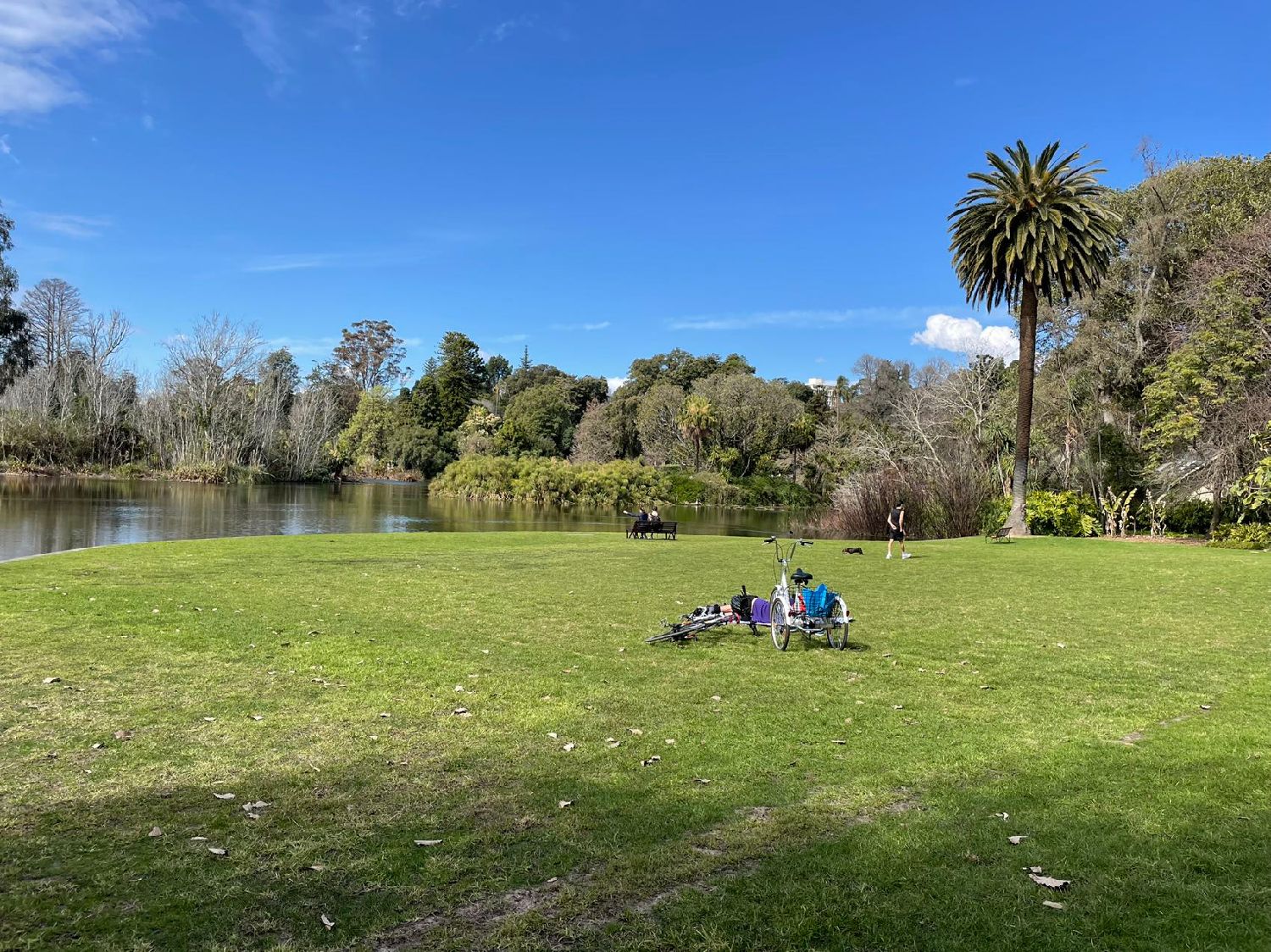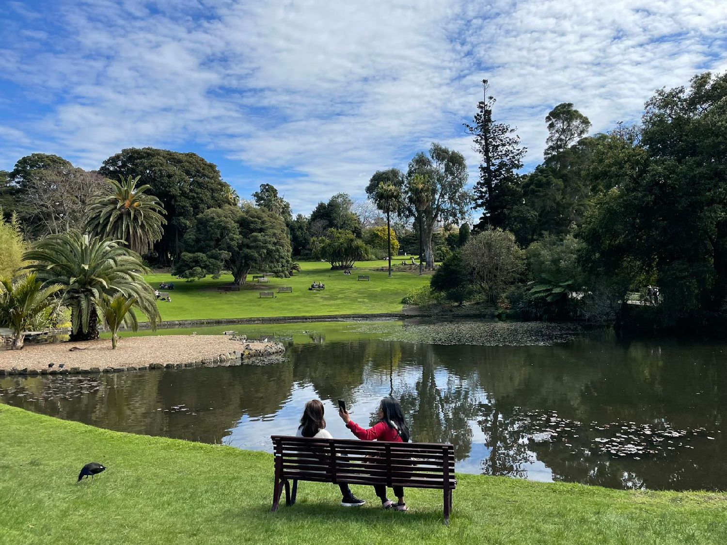 图为墨尔本民众在草坪的湖边休息。图片来源:大洋传媒记者 摄