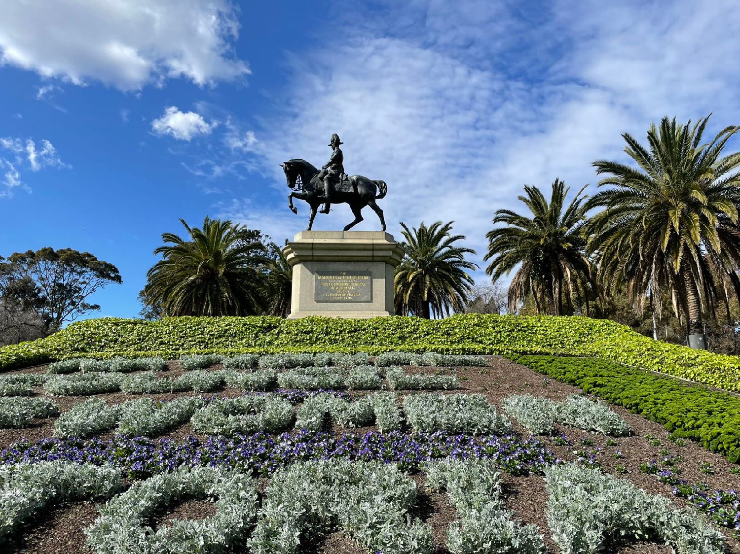 图为墨尔本草坪上的雕塑。图片来源:大洋传媒记者 摄