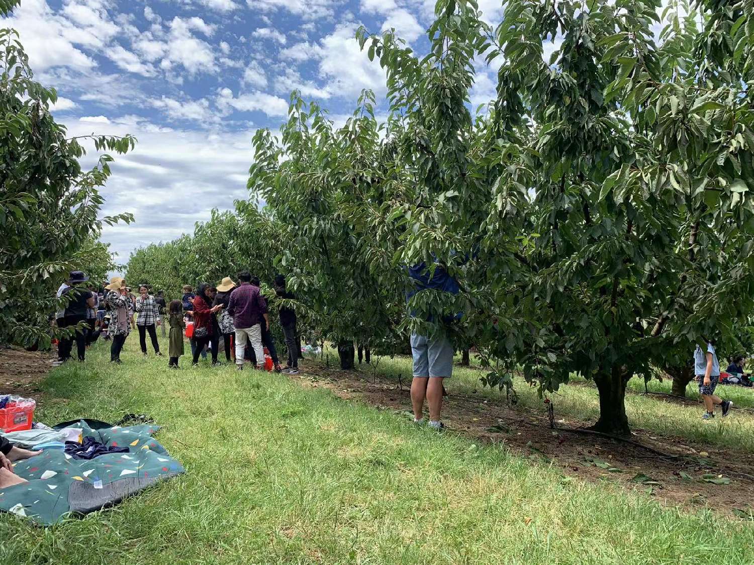 近日,大洋传媒记者拍摄了一组澳洲的樱桃园的图片。图为民众在樱桃园内游玩。图片来源:大洋传媒记者 摄