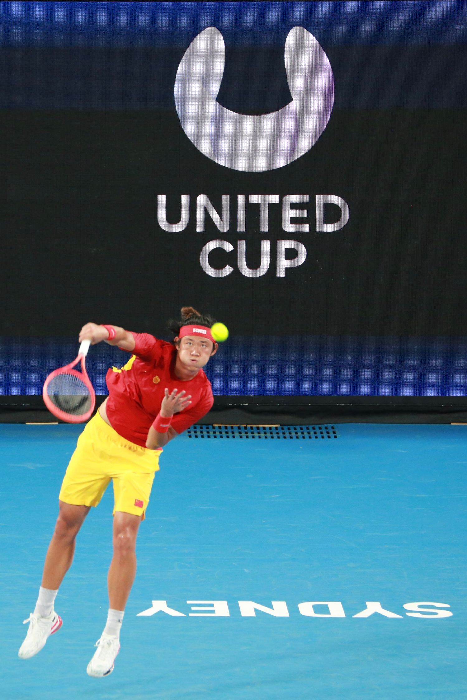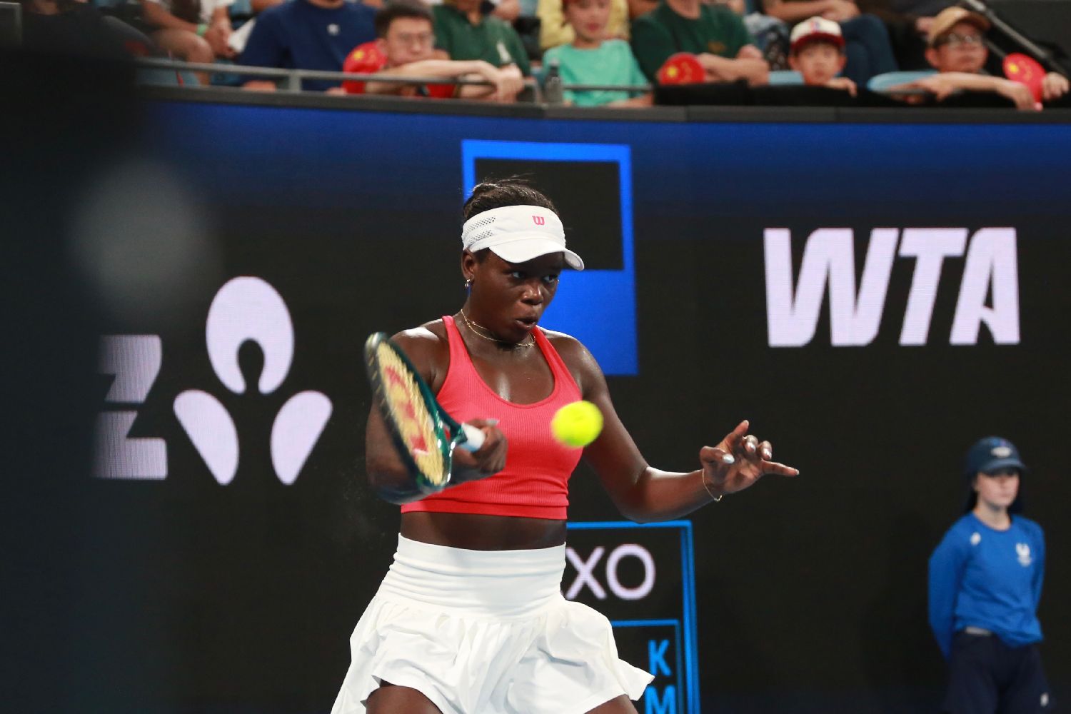 1月4日,在悉尼进行的2026联合杯网球赛B组小组赛中,中国队不敌加拿大队。图为加拿大选手姆博科在女单比赛中。图片来源:中新社