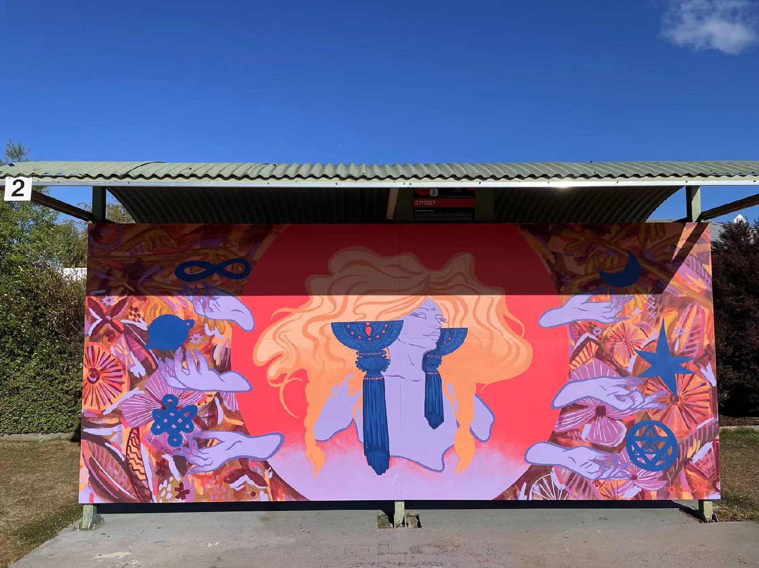 近日,大洋传媒记者拍摄了一组澳洲塔斯马尼亚的壁画小镇图片。图为塔斯马尼亚壁画小镇内的壁画作品。图片来源:大洋传媒记者 摄