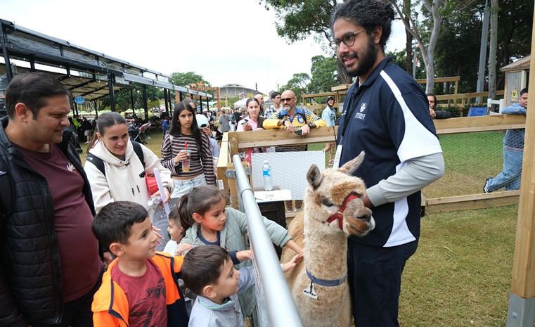 2026年悉尼皇家复活节农展会于4月2日至13日在悉尼奥林匹克公园举行,为当地民众呈现了一场融合农业传统与现代娱乐的年度盛典。展会现场设有动物展示、农业竞赛、游乐设施和食品摊位等区域。今年共有约1.3万只动物参展,涵盖400多个不同品种。游客不仅可以近距离接触农场动物,还能观赏到包括高空特技表演、乡村音乐演出以及亲子互动剧在内的各类演出。图为2026年悉尼农展会现场,游客与小动物进行互动。图片来源:人民网