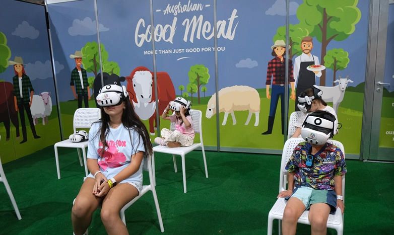 2026年悉尼农展会现场,小朋友体验虚拟现实设备。图片来源:人民网