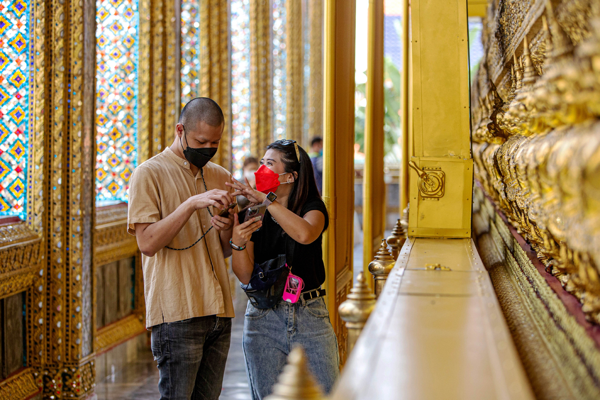 11月1日,游客在泰国曼谷大皇宫景区游览。图片来源:新华社