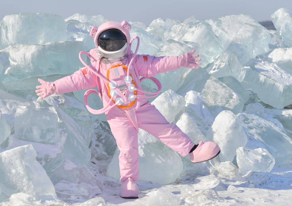 2月23日,在长春净月潭国家森林公园内,由水库天然冰块堆砌而成的“蓝冰”景观,吸引市民打卡拍照。图片来源:澳洲网