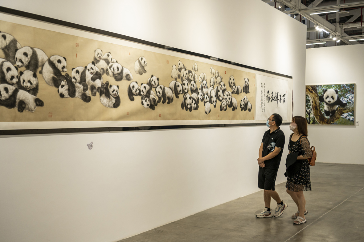 7月10日,四川成都,“熊猫IP”艺术作品展吸引参观者。集合600余件“熊猫IP”艺术作品的“黑与白”熊猫艺术创意展日前在四川成都东郊记忆国际艺术展览中心展出,创意展吸引了不少参观者。 图片来源:澳州网