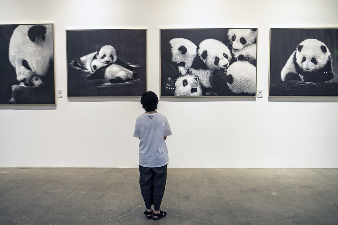 7月10日,四川成都,熊猫主题摄影作品吸引参观者驻足。图片来源:澳州网