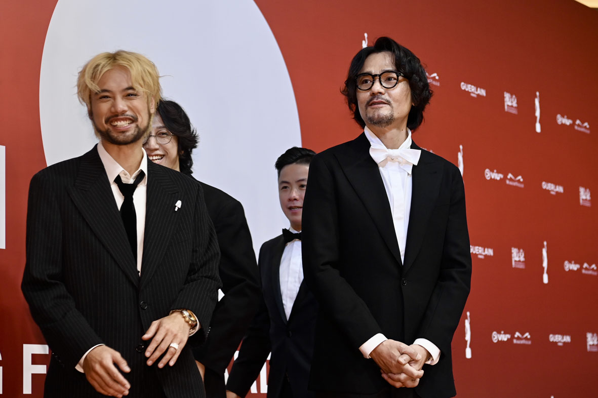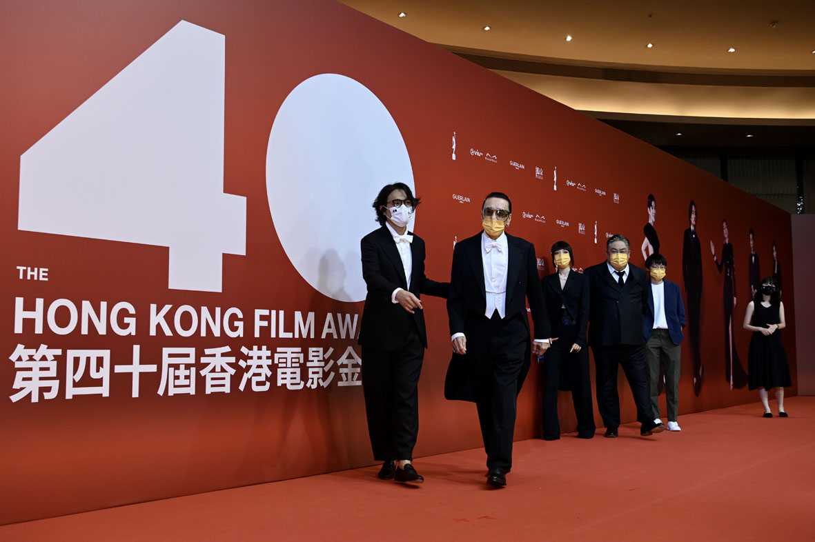7月17日,“第40届香港电影金像奖”的红地毯环节于香港九龙湾国际展贸中心的室内举行,一众明星出席红地毯环节。图为电影《智齿》的团队。 图片来源:澳州网