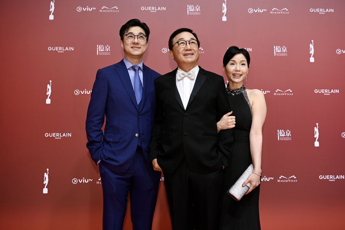 7月17日,“第40届香港电影金像奖”的红地毯环节于香港九龙湾国际展贸中心的室内举行,一众明星出席红地毯环节。图为“第40届香港电影金像奖”终身成就奖获奖者许冠文(中)出席红地毯环节。 图片来源:澳州网