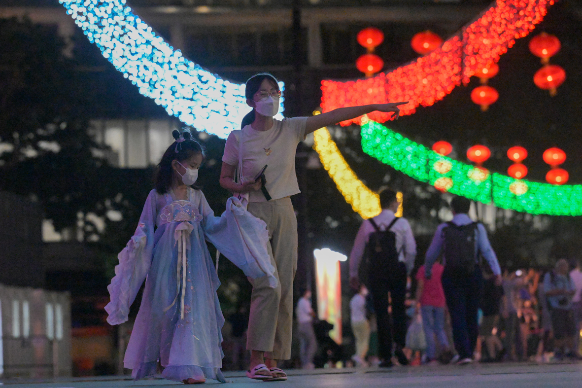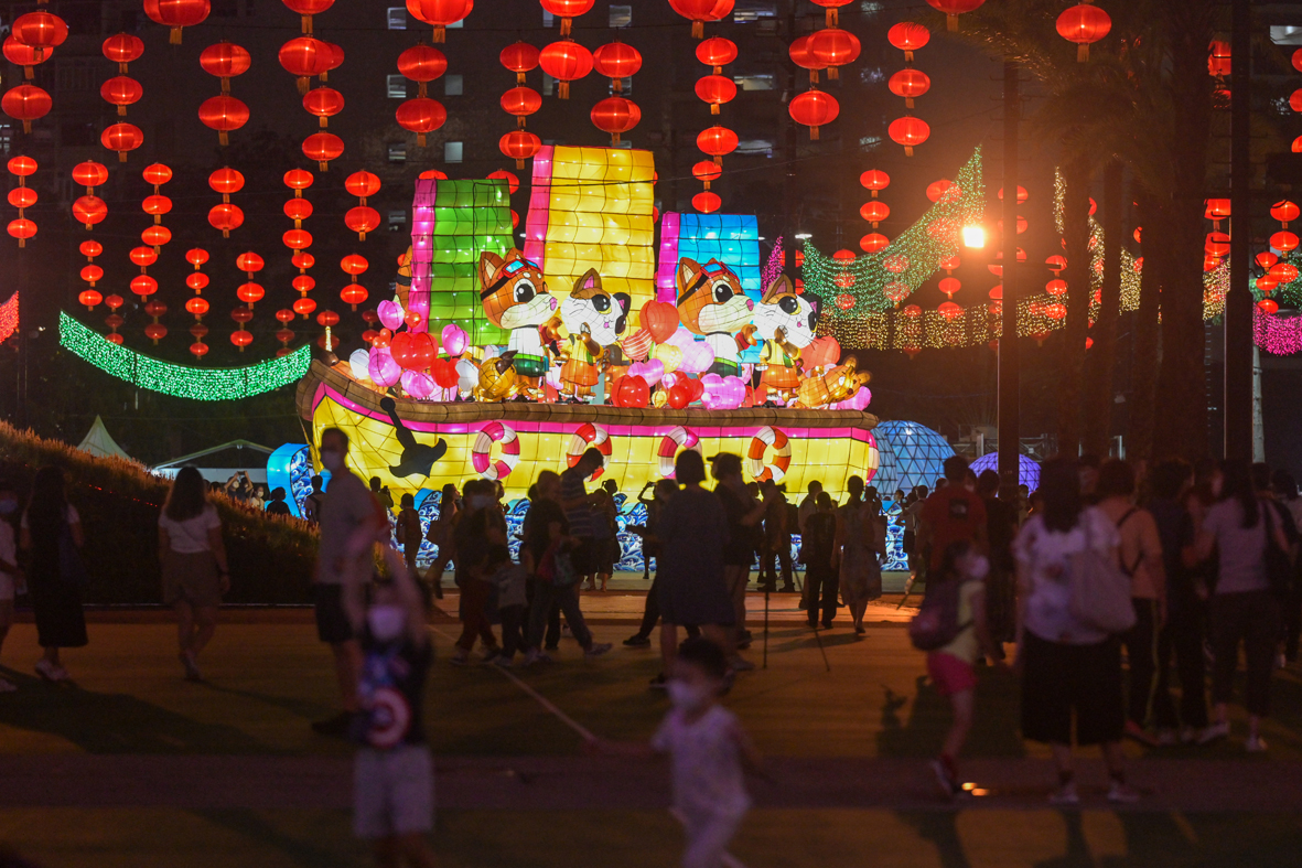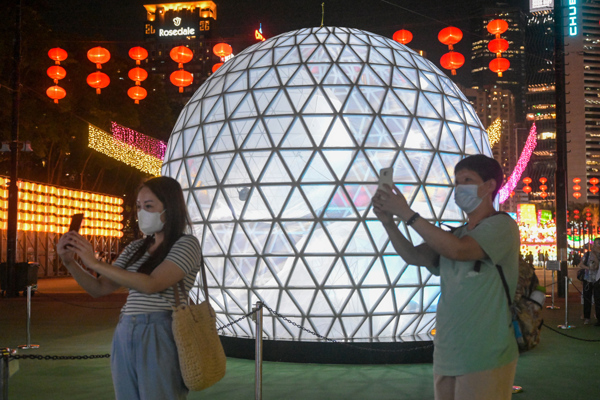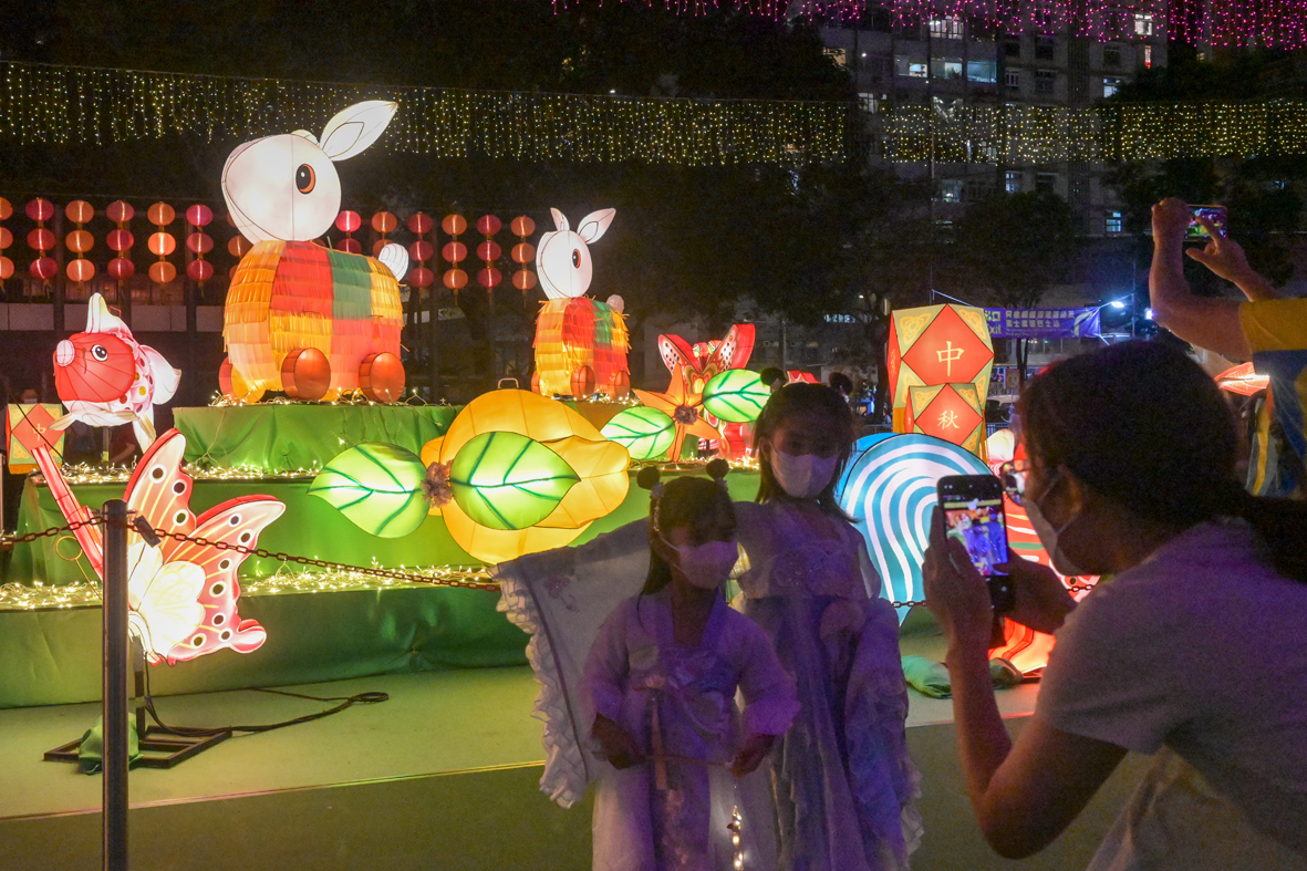 图为市民在中秋彩灯展拍照。图片来源:澳洲网
