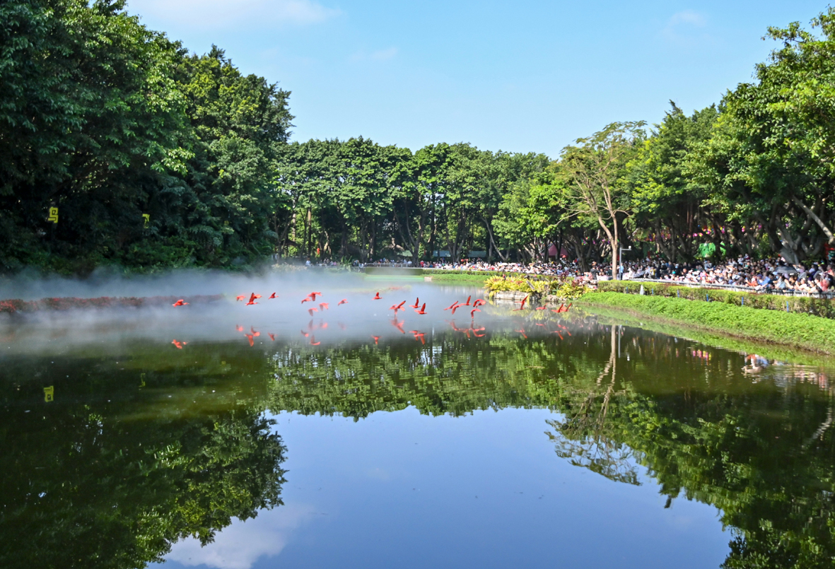 2月2日,广东省广州市,一群飞翔的红鹮吸引游客眼球。图片来源:澳洲网