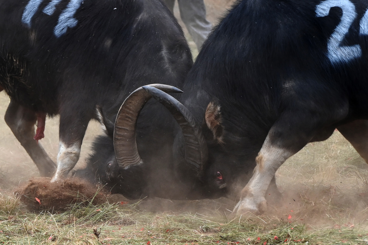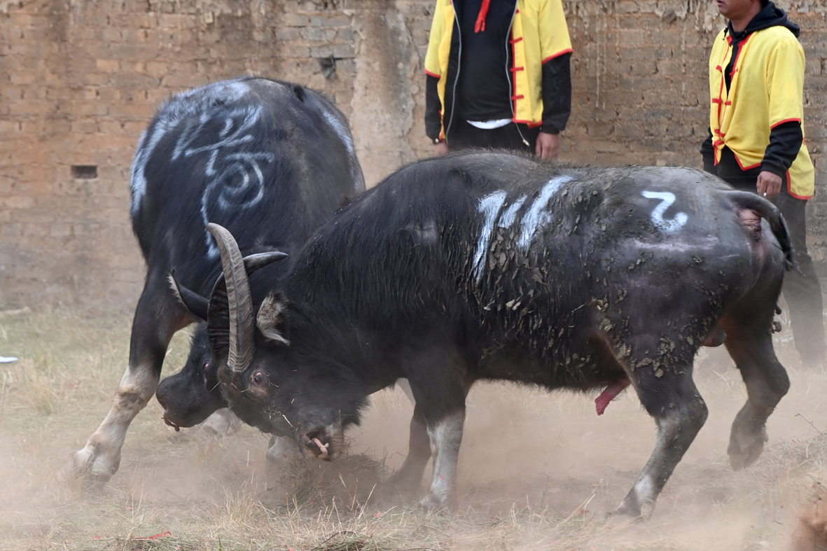 2月19日,斗牛现场,两头斗牛势均力敌。图片来源:澳洲网