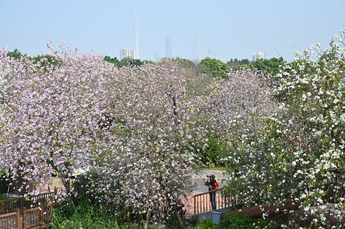 2月27日,广东广州,天气晴好,海珠国家湿地公园紫荆花盛放,吸引游人赏花拍照。图片来源:澳洲网