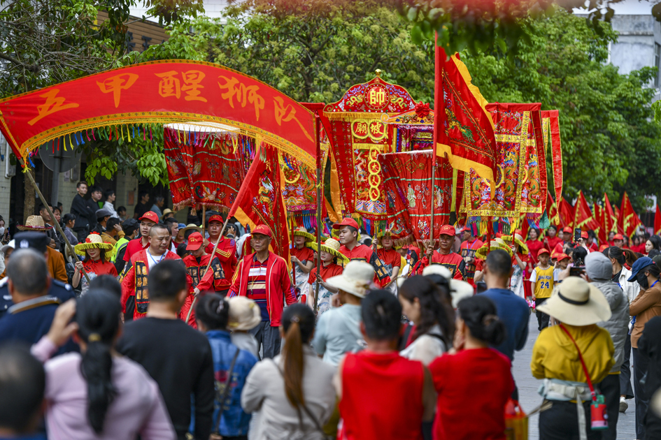2月28日,第二十二届海口冼夫人文化节之“装军巡游”活动在海南海口新坡镇举行。冼夫人文化节(原称军坡节)是海南当地的传统民俗活动,为纪念公元六世纪活跃在广东、海南一带的女军事家、政治家冼夫人而举办。图片来源:澳洲网