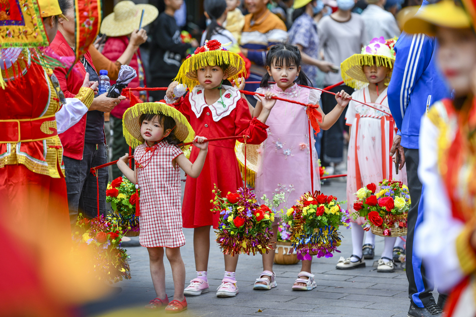 图为在活动中肩挑花篮的小女孩。图片来源:澳洲网