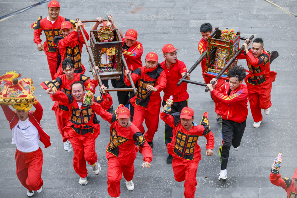 图为活动中民众抬着“神舆”冲向“点将台”。图片来源:澳洲网