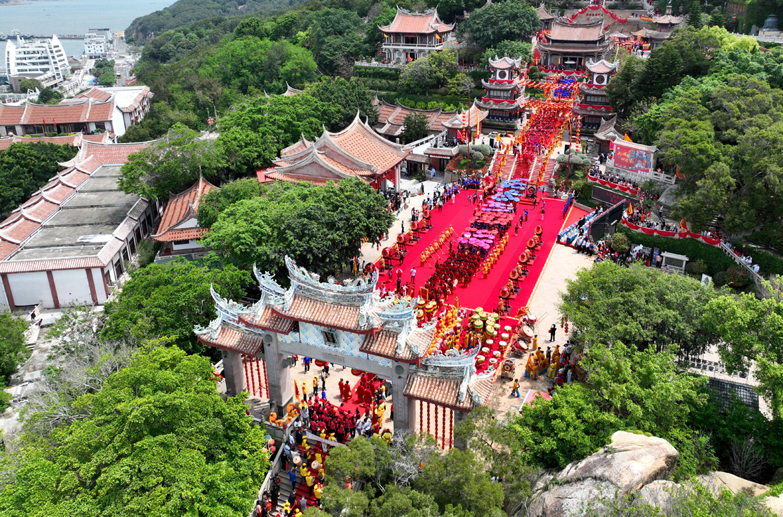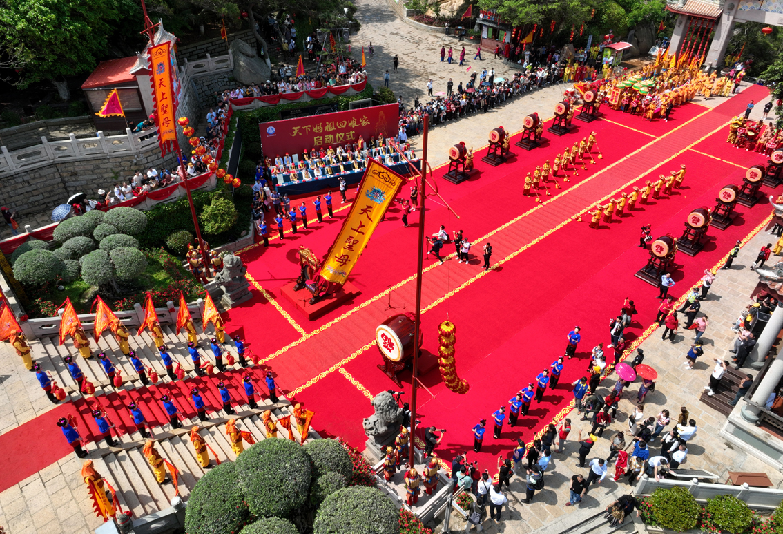 4月20日,癸卯年“天下妈祖回娘家”在福建省莆田市湄洲岛启幕,两岸妈祖敬仰者纷纷赴湄洲岛谒祖进香。图为航拍启动仪式现场。(无人机照片)图片来源:澳洲网