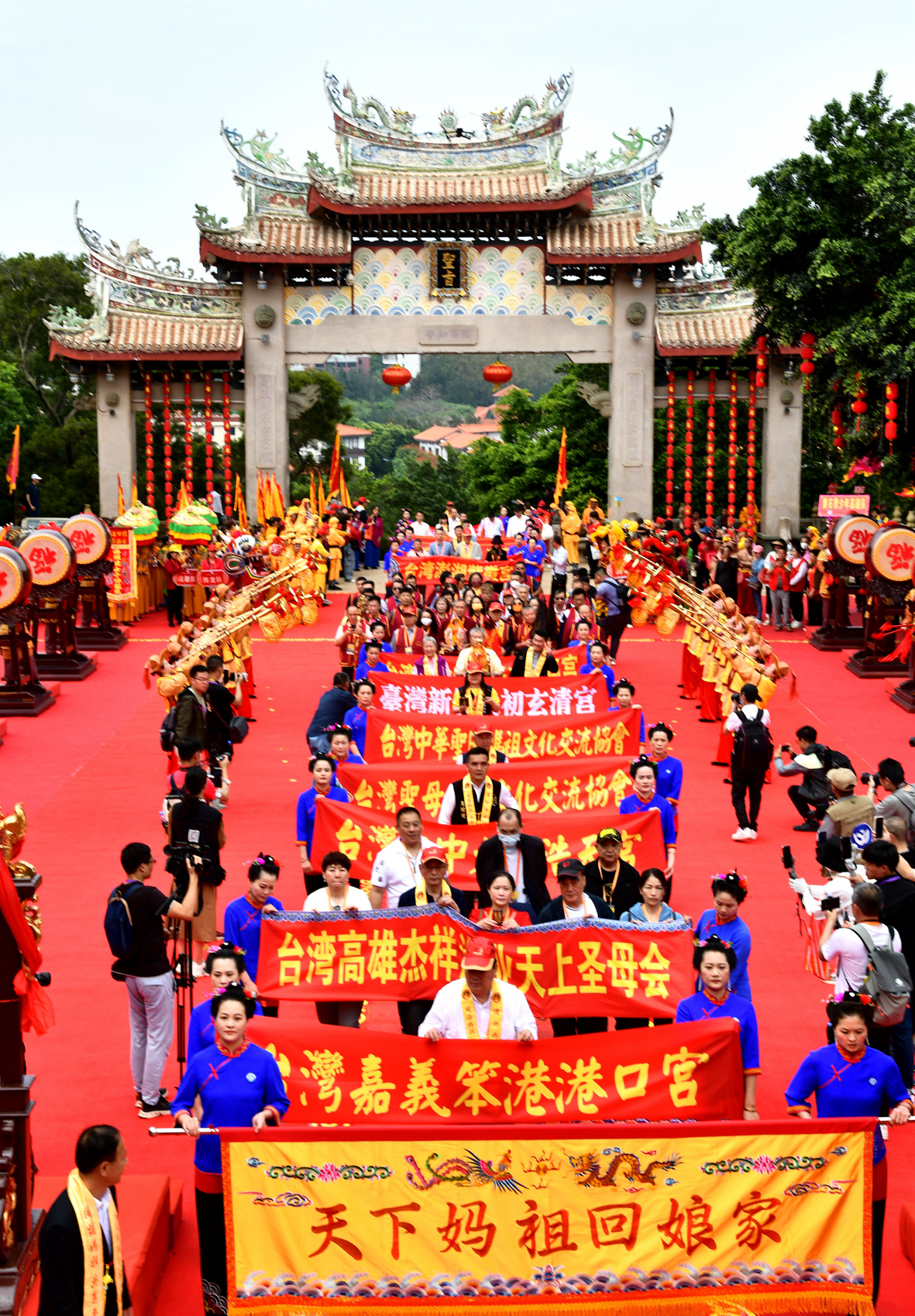 图为两岸信众恭请分灵妈祖,拾阶走向湄洲妈祖祖庙天后宫。图片来源:澳洲网