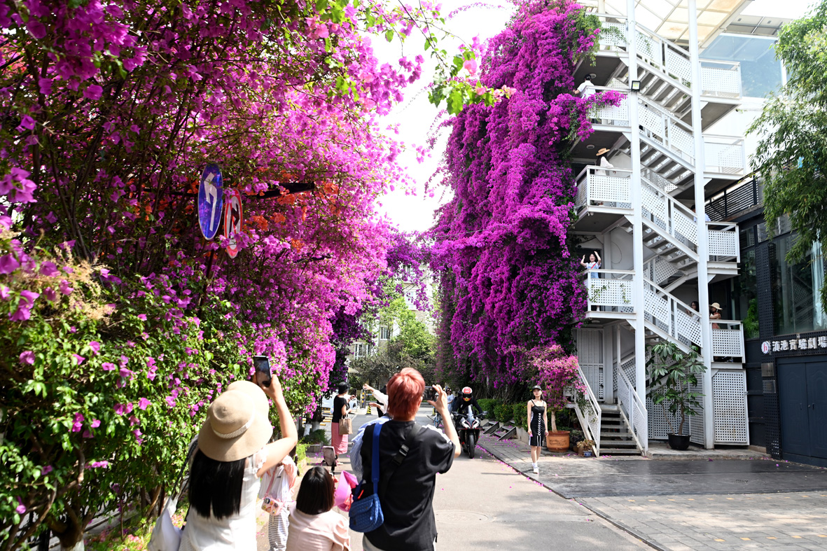 5月9日,三角梅盛放吸引市民拍照。图片来源:澳洲网