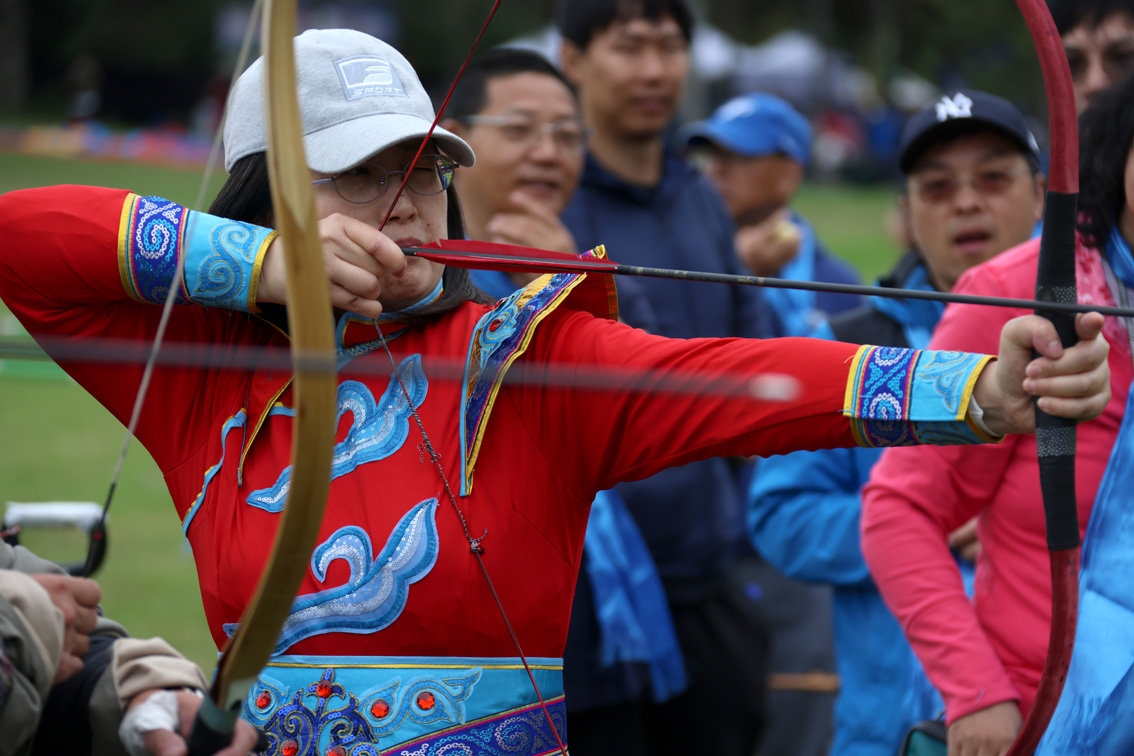 图为那达慕大会的参加者们体验拉弓射箭。图片来源:澳洲网