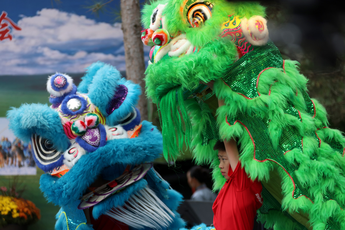 图为当地华人青少年在那达慕大会上表演舞狮。图片来源:澳洲网
