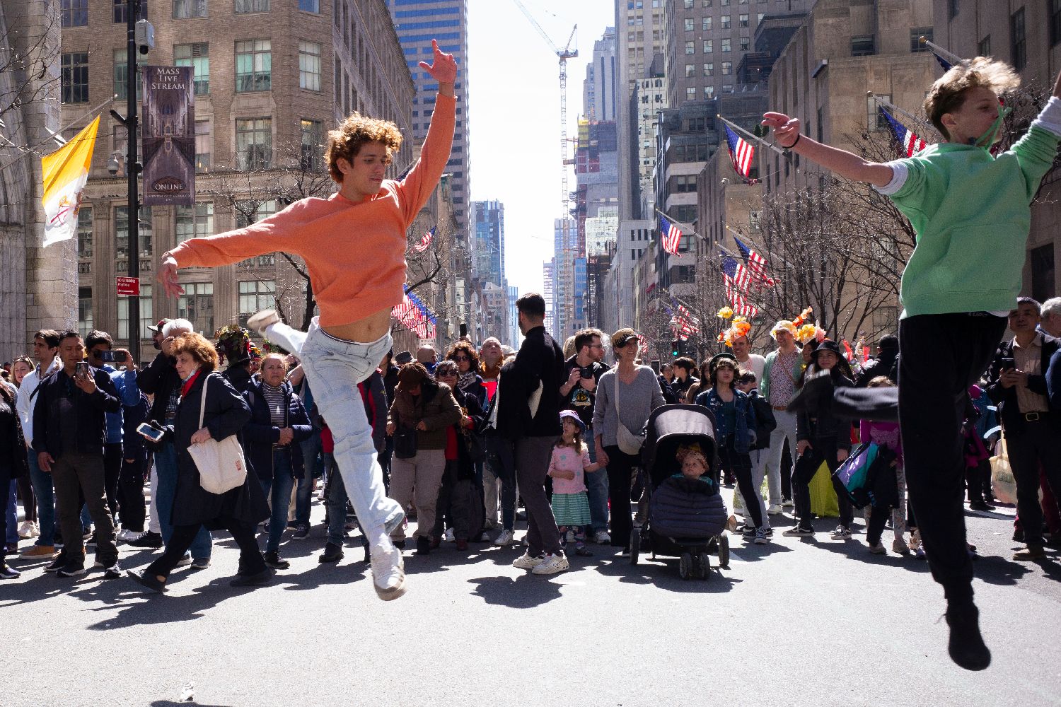 当地时间3月31日,纽约复活节花帽游行中的舞蹈。当日是西方传统节日复活节,人们头戴精心制作的花帽,在美国纽约第五大道参加一年一度的复活节花帽游行。图片来源:澳洲网