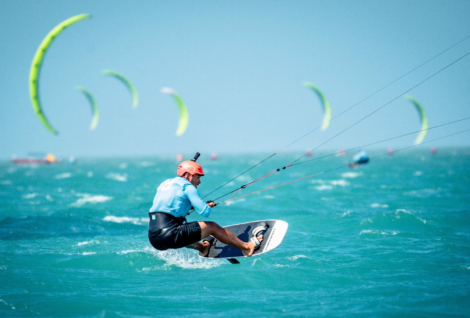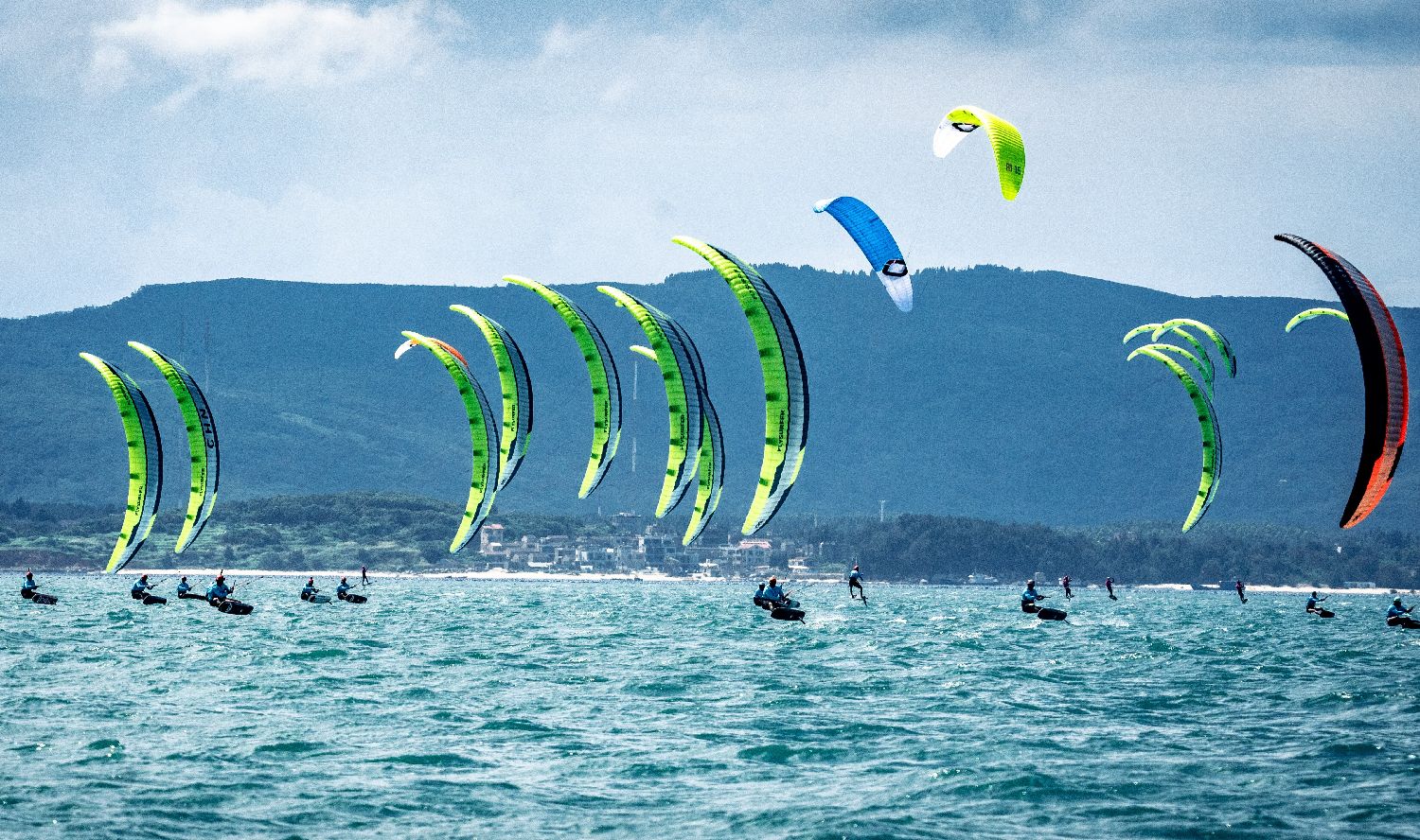 7月2日,福建平潭,选手在比赛中。6月28日至7月2日,2024年全国风筝板冠军赛在平潭综合实验区龙王头海域举行,吸引来自山东、上海、浙江、广东、福建、四川、广西及部分俱乐部的80多名选手参赛。平潭拥有良好的风力、沙滩资源,是国内最早开展风筝板运动与赛事的地区之一。图片来源:澳洲网
