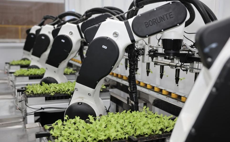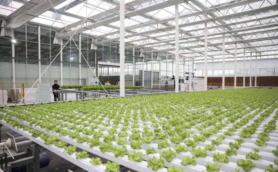 3月5日,浙江嘉兴平湖农业经济开发区,一家智慧农业企业的全自动叶菜管道栽培系统高效运转,实现自动码垛、定植篮摆放、精准移栽等环节,整体效率较传统人工提升75%。图片来源:中国央视网