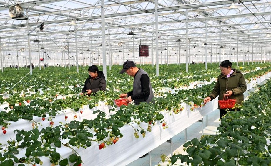 近年来,江苏省淮安市盱眙县利用当地资源禀赋,大力发展草莓、茶叶等特色产业。当地采用“企业+农户+科研院所“模式,完善基础设施建设,推进产业迅速发展,为乡村振兴注入新活力。图为员工在现代农业园采摘草莓。图片来源:新华网