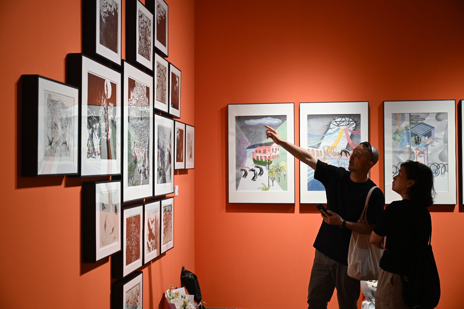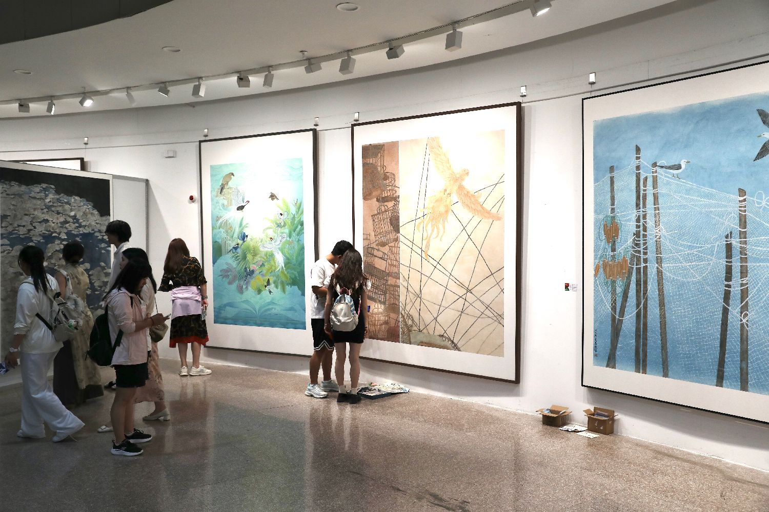 6月16日,陕西西安,民众参观美术作品展。近日,2025年“无界西美”西安美术学院本科毕业作品展开幕,吸引民众前往参观。图片来源:中新社