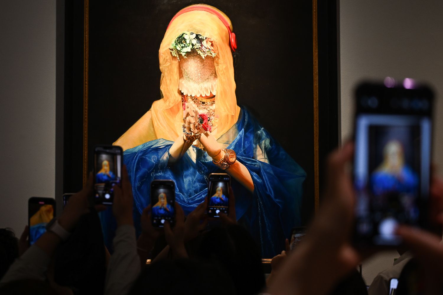 6月12日,重庆,市民在四川美院美术馆观赏油画作品《祷》。近日,四川美术学院2025年本科生毕业作品展正在该校美术馆举行。展览中,一幅名为《祷》的油画作品凭借其独特的艺术表现力走红网络,吸引不少市民、游客前来观赏。图片来源:中新社