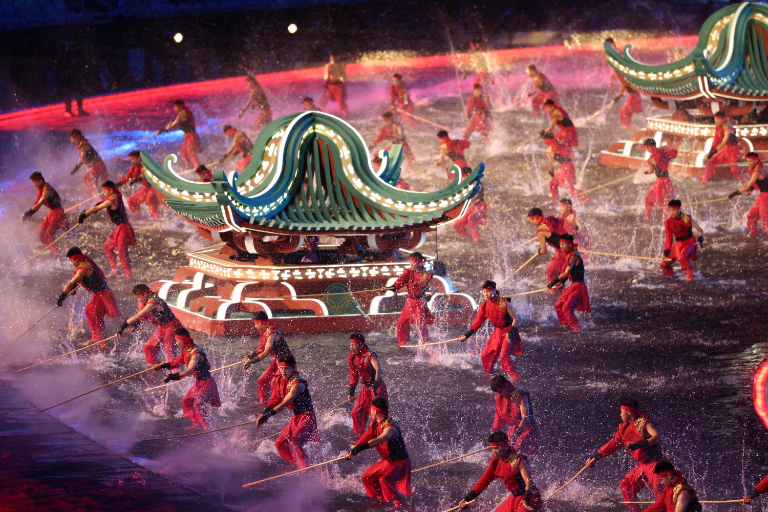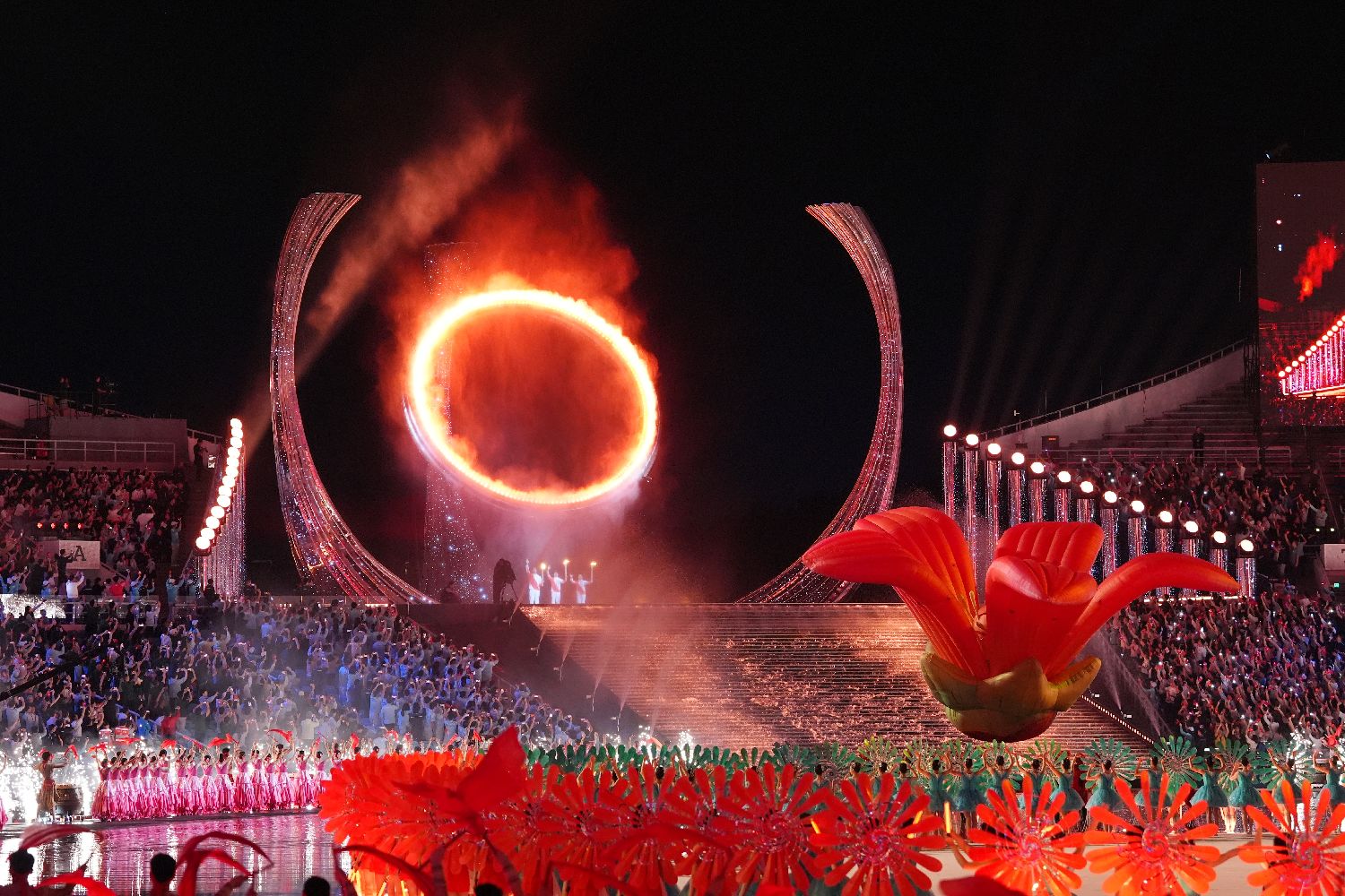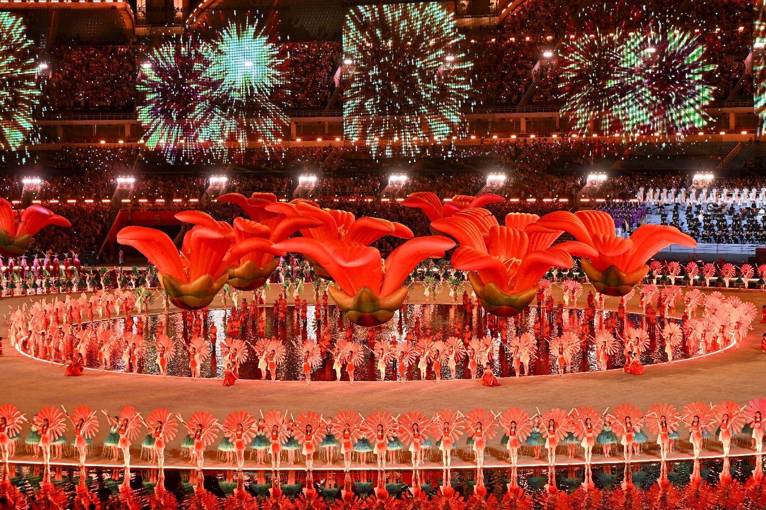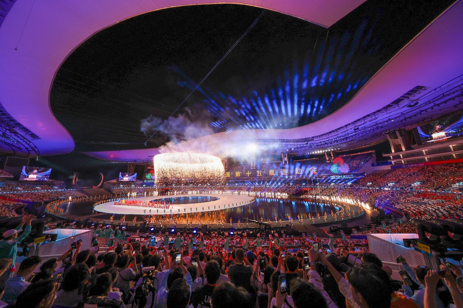 11月9日,中国第十五届全国运动会开幕式在广东奥林匹克体育中心举行。图为现场文体展演。(中新社)