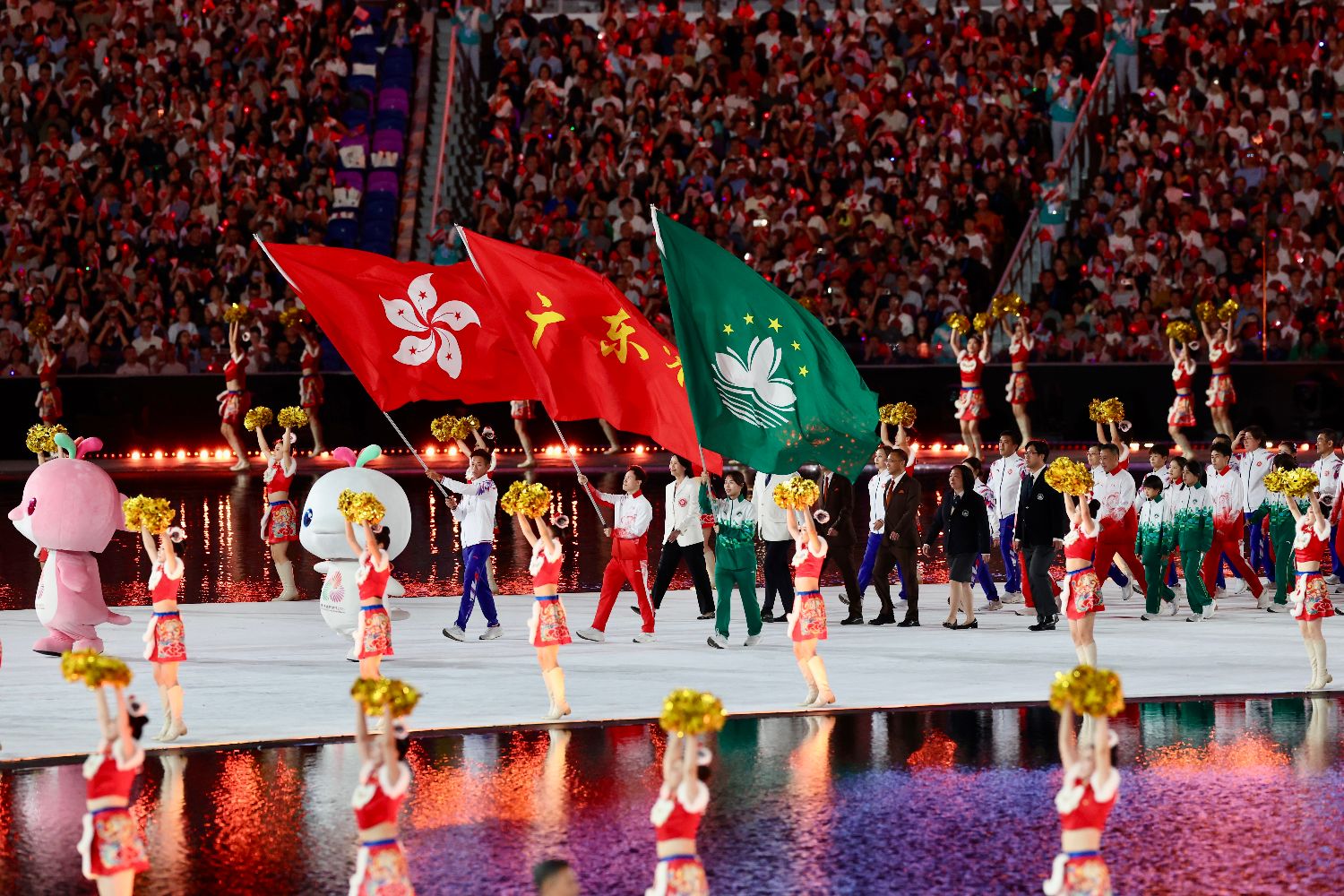 图为东道主广东、香港、澳门体育代表团同时入场。(中新社)