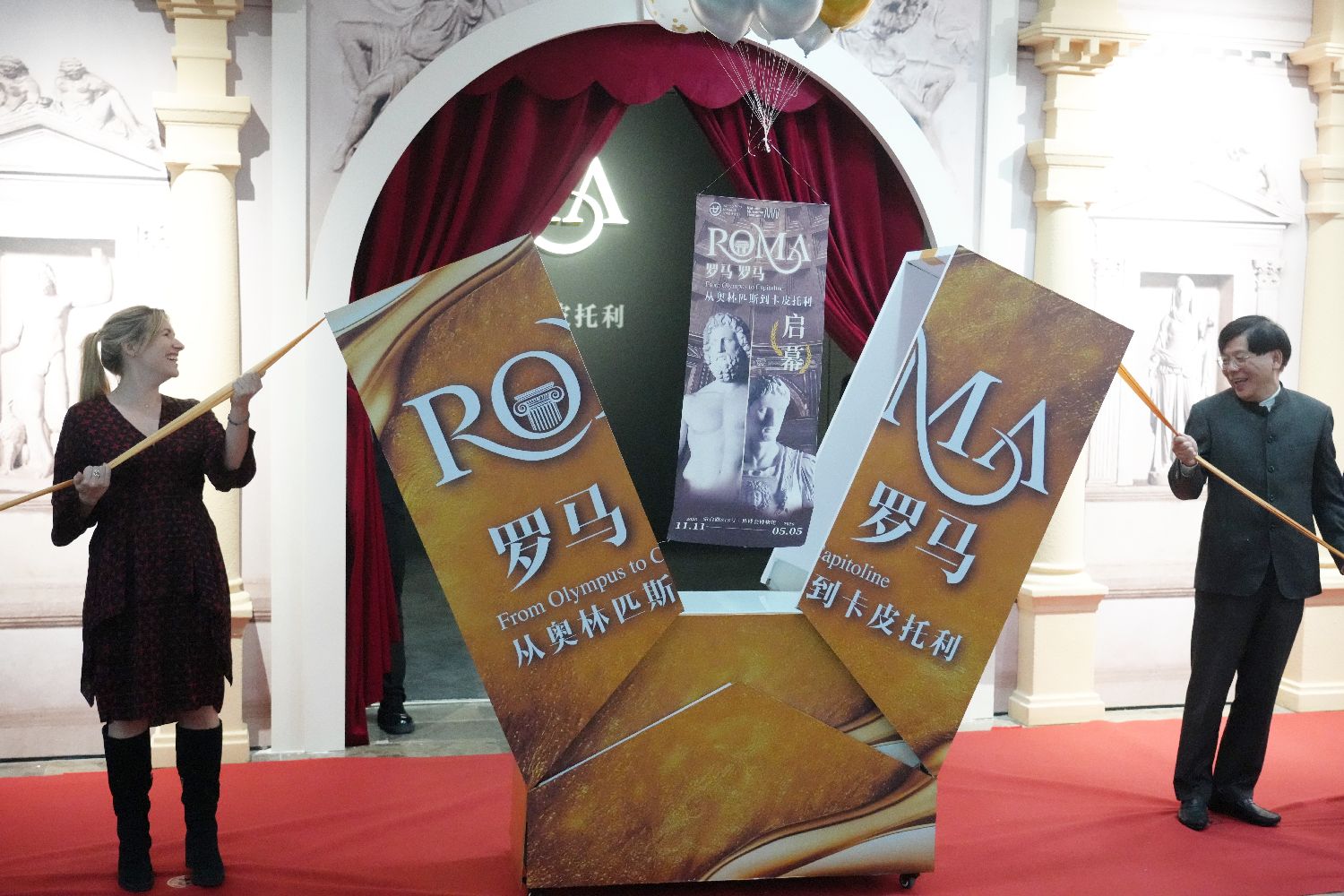 11月10日,“罗马罗马:从奥林匹斯到卡皮托利”古罗马艺术大展在上海世博会博物馆开幕。展览的131件(套)珍贵藏品,涵盖雕塑、陶器、玻璃器、宝石、石棺浮雕等品类,其中绝大多数为首次亮相上海。图为开幕仪式现场。(中新社)