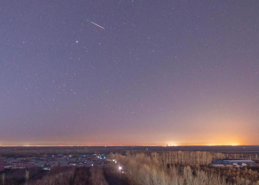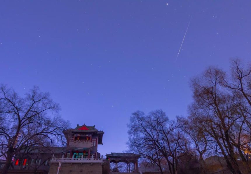 当地时间11月18日凌晨在黑龙江省哈尔滨市拍摄的狮子座流星雨。11月18日凌晨,被称为“流星雨之王”的狮子座流星雨迎来极大。狮子座流星雨是一个典型的周期性流星雨,引起这个流星雨的是一颗名叫坦普尔-塔特尔的彗星。图片来源:新华网