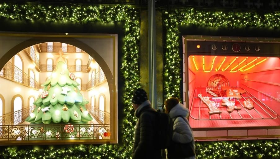 当地时间11月30日,随着美国假日购物季的到来,纽约各大百货商场的节日橱窗成为街头一景。图为第五大道百货公司的节日橱窗吸引路人目光。图片来源:中新网
