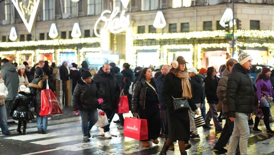 当地时间11月30日,美国纽约第五大道上购物的人群熙熙攘攘。“黑色星期五”之后的周末各大商家继续促销,纽约商业区的民众购物热度不减。图片来源:中新网