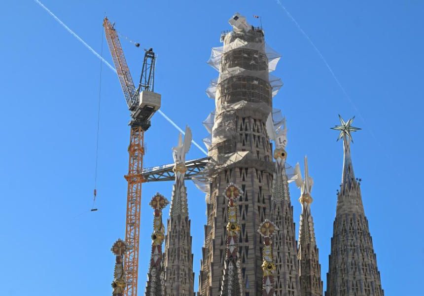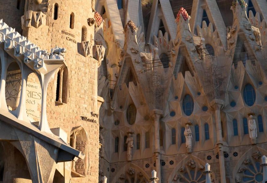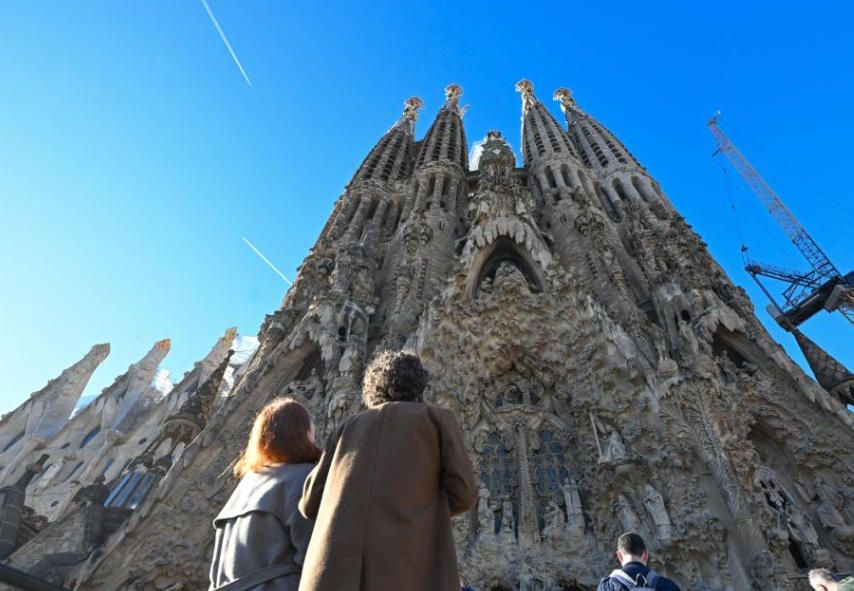 这是12月1日在西班牙巴塞罗那拍摄的圣家堂外景。西班牙巴塞罗那地标建筑圣家族大教堂(圣家堂)由西班牙著名建筑师高迪设计,从1882年开始修建至今,预计将于2030年竣工。图片来源:新华网