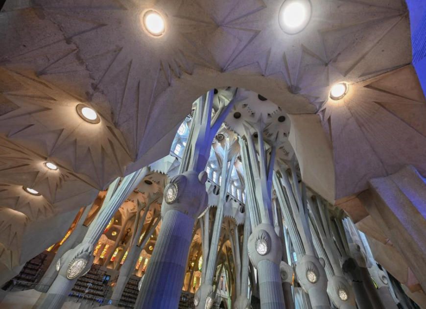 这是12月1日在西班牙巴塞罗那拍摄的圣家堂内景。图片来源:新华网