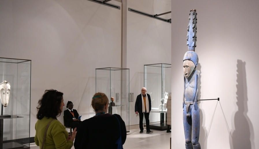 图为一件来自大洋洲岛国瓦努阿图的雕像在“五洲艺廊”展出。图片来源:中新网